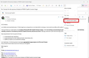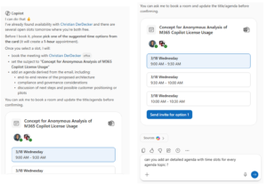 Einfach in der Mail auswählen und Copilot erstellt einen Meeting-Invite mit allen Infos: